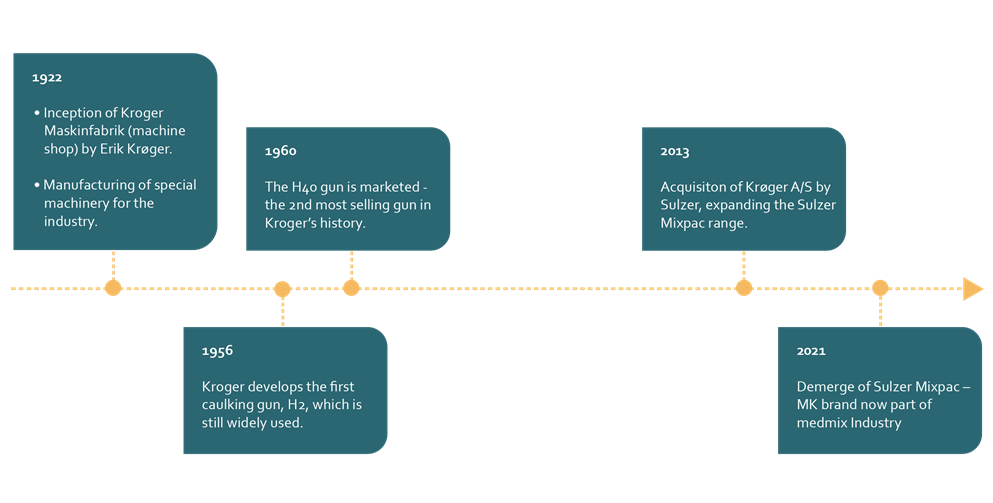 medmix delivers some of the world’s leading hand-held mixing and dispensing systems for adhesives and sealants used within the industrial segment. We are determined to uphold and boost our existing partnerships with industrial manufacturing, production, coating, and construction leaders. Our long-term partnerships are key to our future successes. Roman Thoenig, Head of Business Segment Industry, points out: “The appeal of the MK brand even after 100 years is unquestionable. Now, part of the medmix hand-held dispenser systems offer, supported by the high reliability medmix delivery channels and customised product labelling, we are sure continue to expand and further develop the MK offer towards the next 100-year mark.”