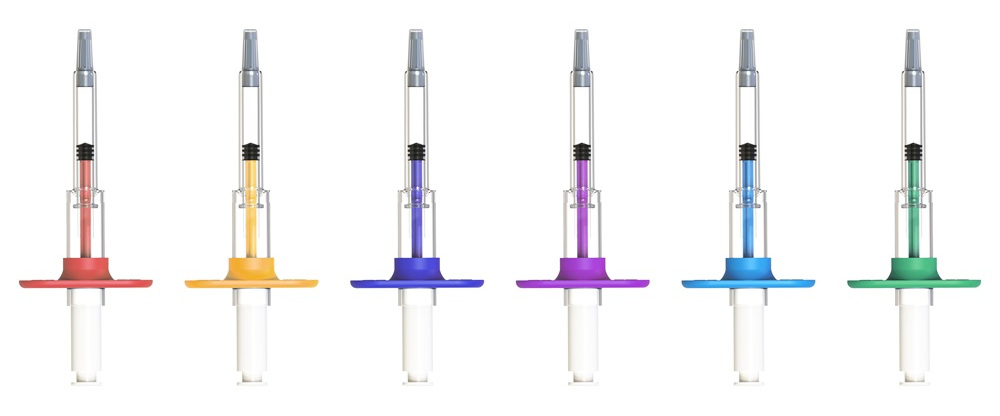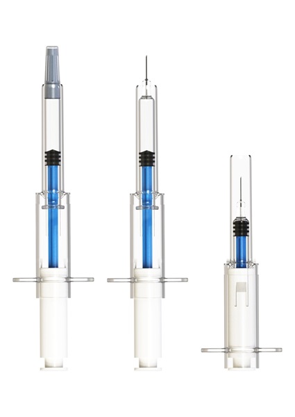 - Compatibility to any standard 1mL long or 2.25 mL glass or plastic pre-filled syringe with small round or cut flange