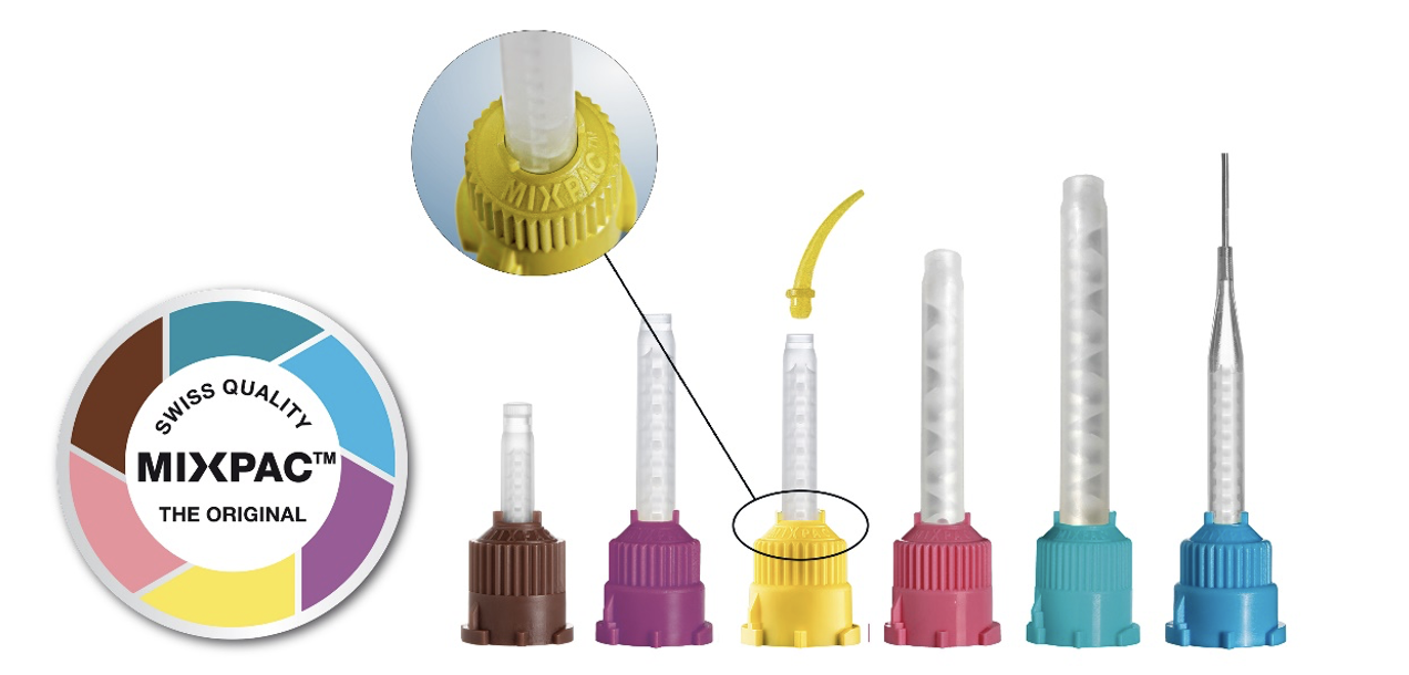 medmix Switzerland Ltd. operates globally in the field of static mixing tips, cartridges and dispensing devices for the dental sector. Genuine MIXPAC tips can be identified by the MIXPAC™ name stamped on the retaining ring and the CANDY COLOR Quality Seal.