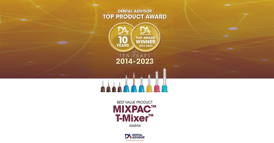 MIXPAC T-Mixer mixing tips were awarded in 2023 with The Dental Advisor Top Product Award for 10 consecutive years in a row!